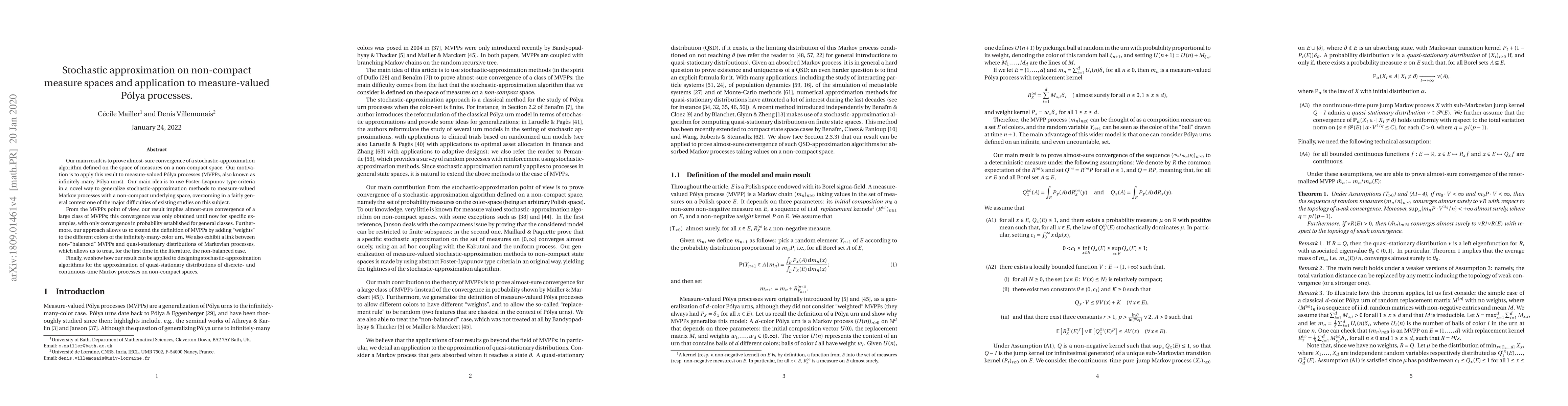 This paper proves almost-sure convergence of a stochastic-approximation algorithm on non-compact measure spaces, extending its application to measure-valued Pólya processes (MVPPs). The authors utilize Foster-Lyapunov criteria to generalize stochastic-approximation methods, achieving convergence for a broader class of MVPPs than previously established.