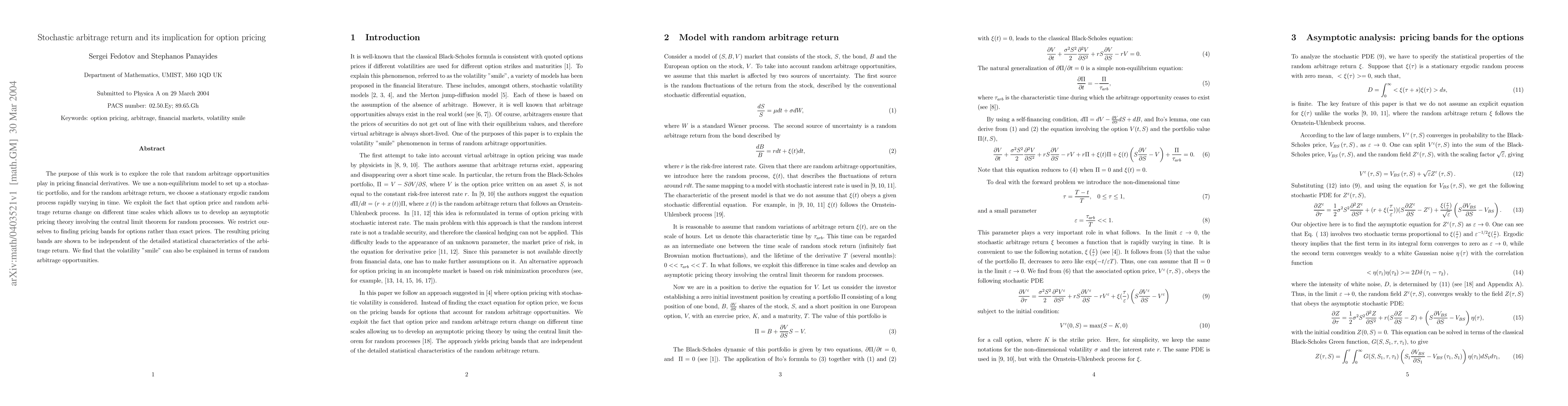 This paper explores the impact of stochastic arbitrage opportunities on option pricing using a non-equilibrium model. It develops an asymptotic pricing theory based on the central limit theorem, deriving pricing bands for options that are independent of specific arbitrage return characteristics, and explains the volatility "smile" through random arbitrage opportunities.