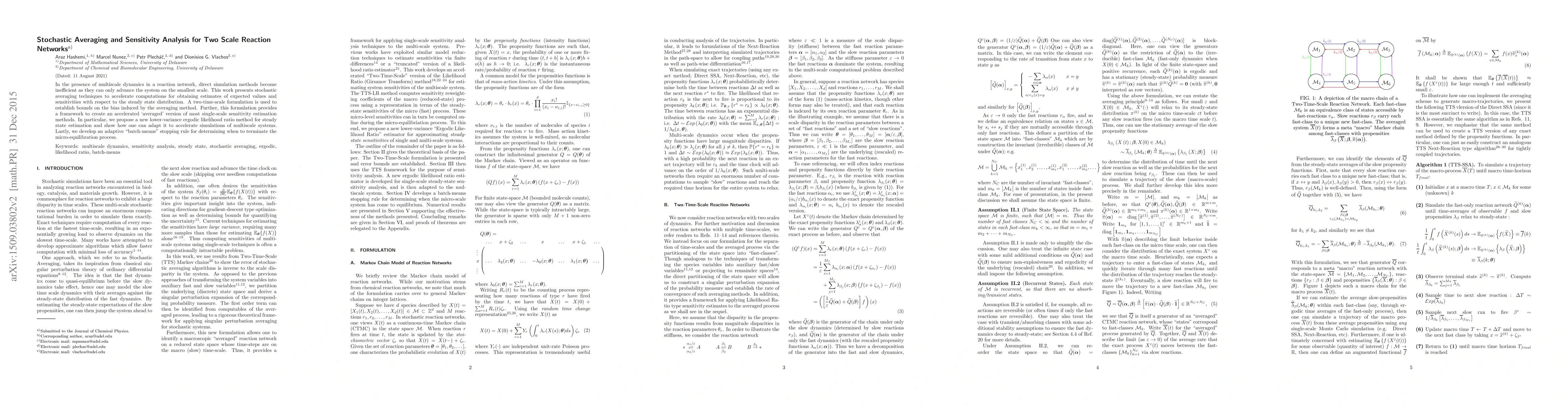 This paper introduces stochastic averaging techniques to efficiently simulate multiscale reaction networks by reducing computational burden. It proposes an accelerated method for estimating steady-state sensitivities and develops a new lower-variance estimator for steady-state computations, along with an adaptive stopping rule for micro-equilibration.