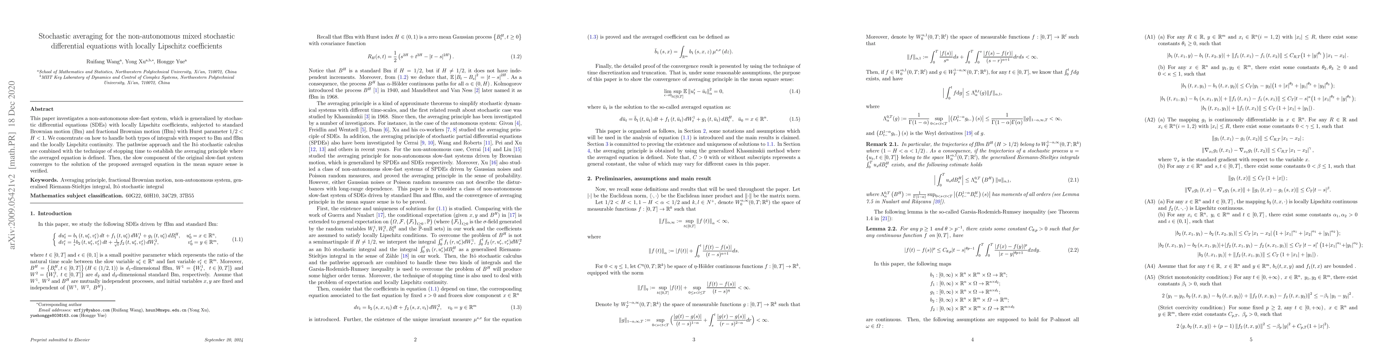 This paper develops a stochastic averaging method for non-autonomous mixed stochastic differential equations with locally Lipschitz coefficients driven by standard and fractional Brownian motions. The averaging principle is established using a combination of pathwise approach, Ito calculus, and stopping time techniques, proving the convergence of the slow component to the averaged equation solution.