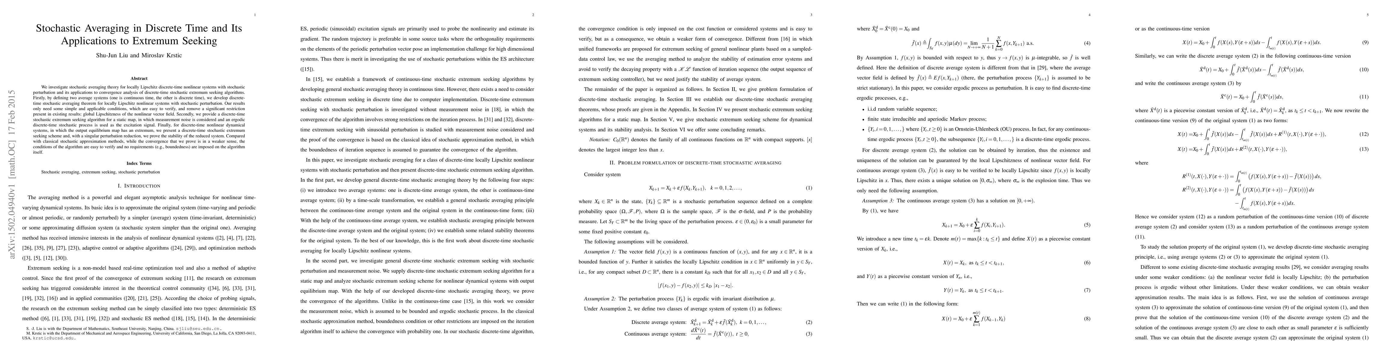 This paper develops a stochastic averaging theory for discrete-time nonlinear systems with stochastic perturbations, presenting a discrete-time stochastic extremum seeking algorithm. It proves stability under weaker conditions than existing methods, without requiring global Lipschitzness or boundedness.