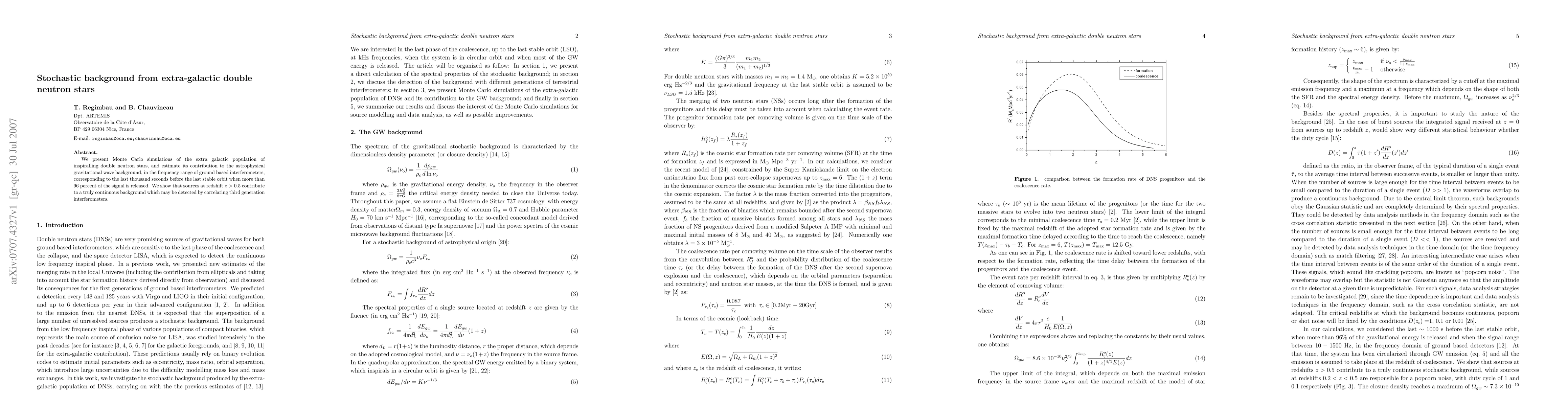 This paper uses Monte Carlo simulations to estimate the contribution of extra-galactic, inspiralling double neutron stars to the astrophysical gravitational wave background. It highlights that sources beyond redshift z>0.5 create a continuous background potentially detectable by advanced interferometers.
