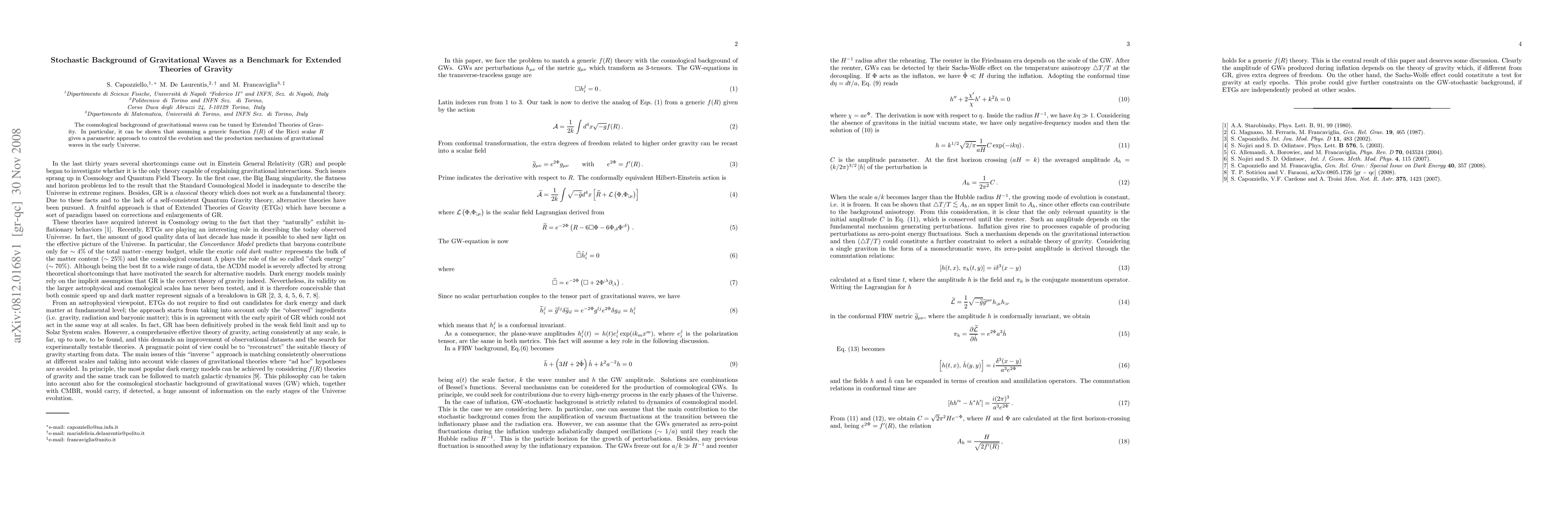 The cosmological background of gravitational waves can be tuned by Extended Theories of Gravity. In particular, it can be shown that assuming a generic function f(R) of the Ricci scalar R gives a parametric approach to control the evolution and the production mechanism of gravitational waves in the early Universe.