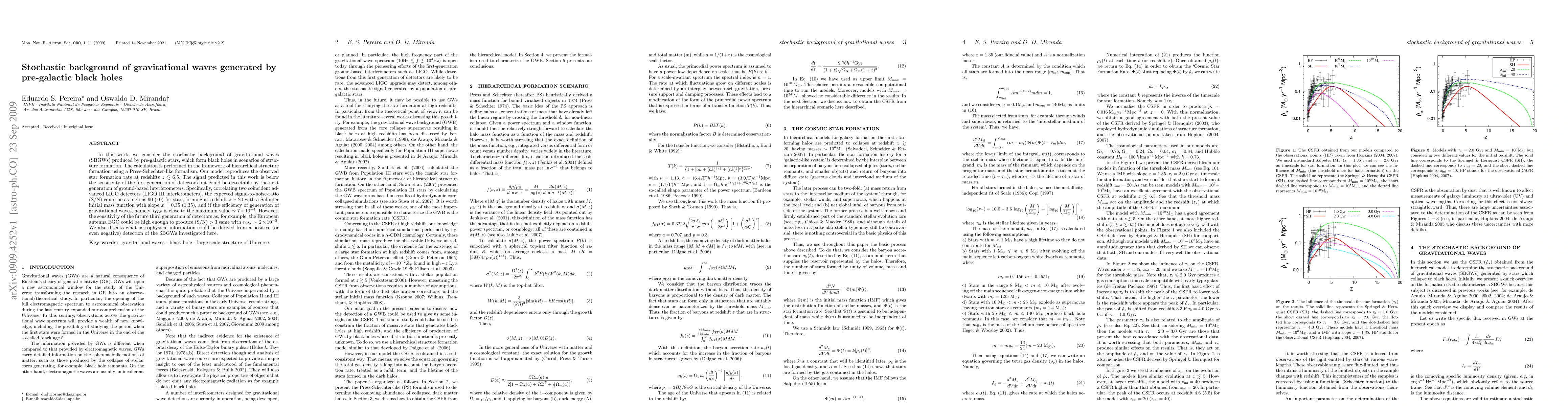In this work, we consider the stochastic background of gravitational waves (SBGWs) produced by pre-galactic stars, which form black holes in scenarios of structure formation. The calculation is performed in the framework of hierarchical structure formation using a Press-Schechter-like formalism. Our model reproduces the observed star formation rate at redshifts z < 6.5. The signal predicted in this work is below the sensitivity of the first generation of detectors but could be detectable by the next generation of ground-based interferometers. Specifically, correlating two coincident advanced LIGO detectors (LIGO III interferometers), the expected signal-to-noise-ratio (S/N) could be as high as 90 (10) for stars forming at redshift z ~ 20 with a Salpeter initial mass function with slope x=0.35 (1.35), and if the efficiency of generation of gravitational waves is close to the maximum value ~ 7 x 10^{-4}. However, the sensitivity of the future third generation of detectors as, for example, the European antenna EGO could be high enough to produce (S/N)}>3 same with efficiency ~ 2 x 10^{-5}. We also discuss what astrophysical information could be derived from a positive (or even negative) detection of the SBGWs investigated here.