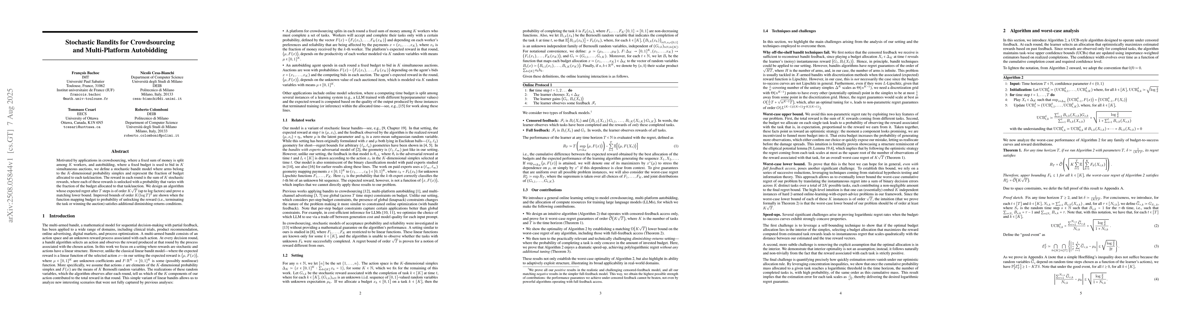 Motivated by applications in crowdsourcing, where a fixed sum of money is split among $K$ workers, and autobidding, where a fixed budget is used to bid in $K$ simultaneous auctions, we define a stochastic bandit model where arms belong to the $K$-dimensional probability simplex and represent the fraction of budget allocated to each task/auction. The reward in each round is the sum of $K$ stochastic rewards, where each of these rewards is unlocked with a probability that varies with the fraction of the budget allocated to that task/auction. We design an algorithm whose expected regret after $T$ steps is of order $K\sqrt{T}$ (up to log factors) and prove a matching lower bound. Improved bounds of order $K (\log T)^2$ are shown when the function mapping budget to probability of unlocking the reward (i.e., terminating the task or winning the auction) satisfies additional diminishing-returns conditions.