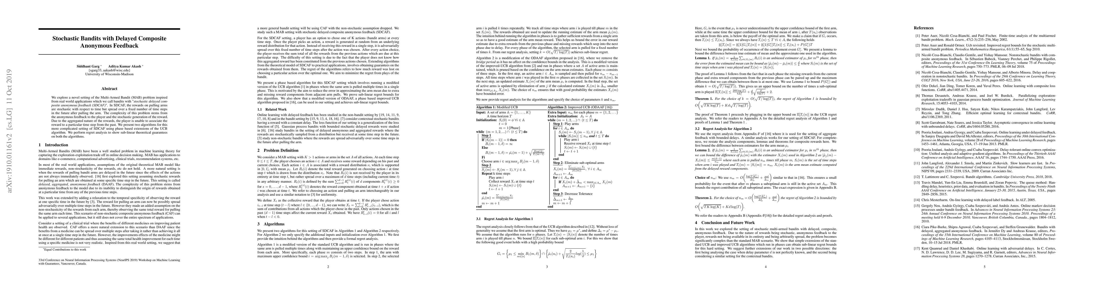 This paper investigates a complex Multi-Armed Bandit (MAB) problem where rewards are stochastically delayed and composite, with anonymous feedback complicating reward association. Two phase-based UCB algorithm extensions are proposed, achieving sub-linear regret guarantees through theoretical analysis.