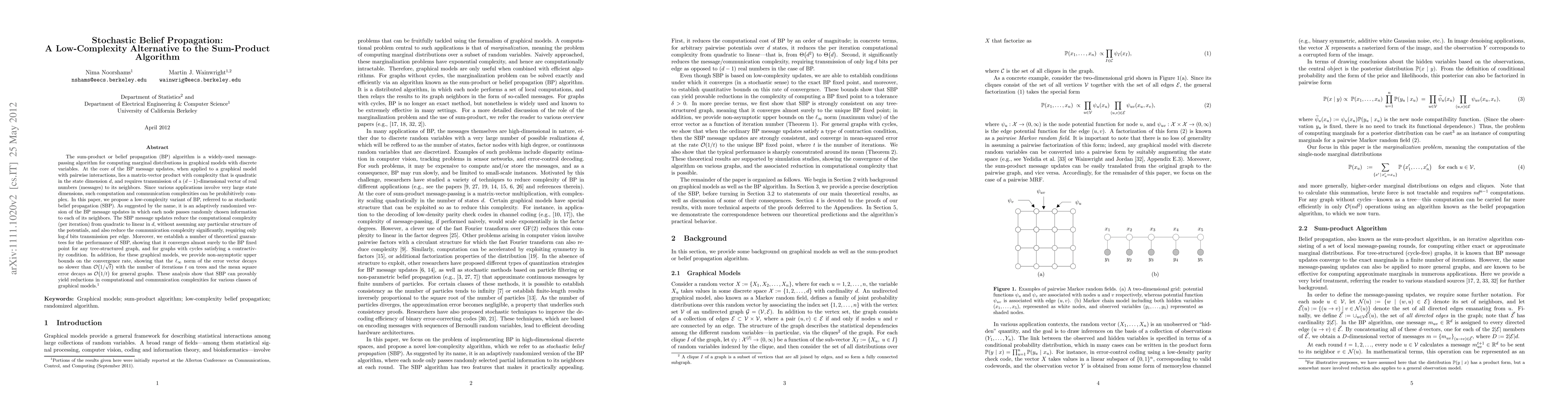 Researchers propose a new algorithm called stochastic belief propagation (SBP) that reduces computational complexity in graphical models, allowing for faster computation and communication, with promising results on both theoretical guarantees and practical applications.