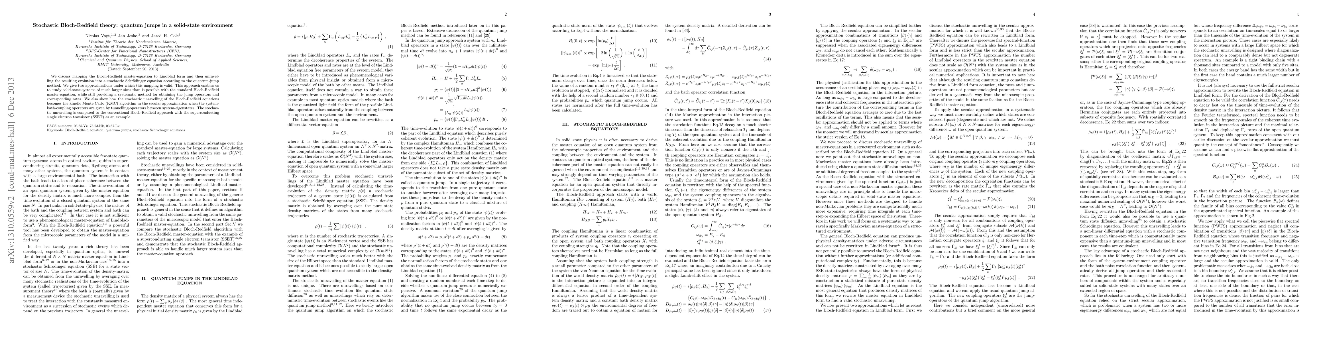This paper maps the Bloch-Redfield master-equation to a Lindblad form and uses the quantum-jump method to derive a stochastic Schrödinger equation, enabling study of larger solid-state systems. It shows how this stochastic unraveling connects to the kinetic Monte Carlo algorithm and compares it to the conventional Bloch-Redfield method using a superconducting single electron transistor as an example.