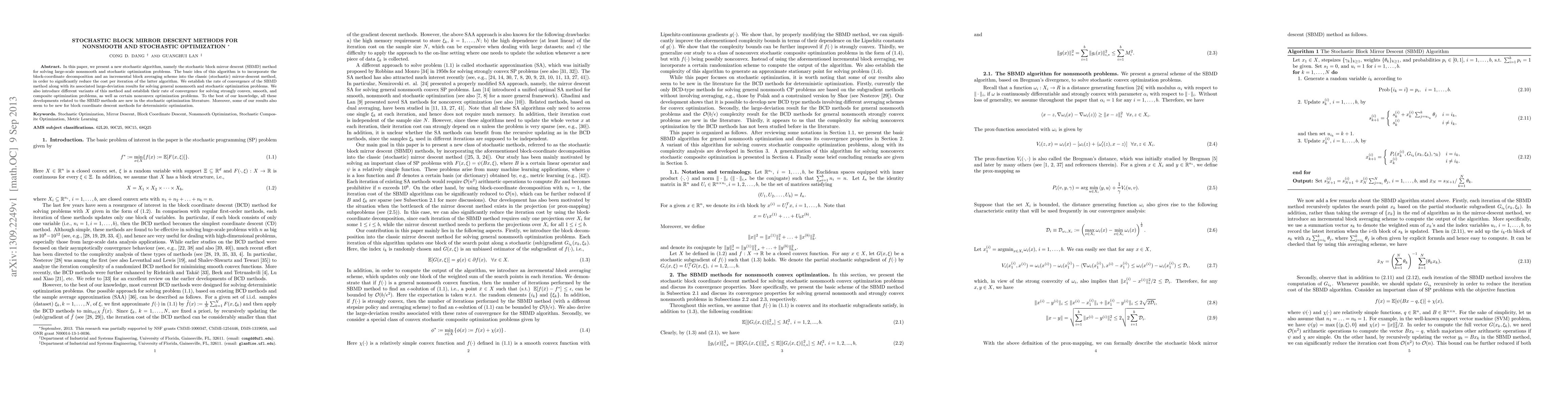 This paper introduces the stochastic block mirror descent (SBMD) method for tackling large-scale nonsmooth and stochastic optimization problems, combining block-coordinate decomposition with incremental averaging to reduce iteration costs. It establishes convergence rates and large-deviation results for general optimization problems, including strongly convex, smooth, and composite cases.