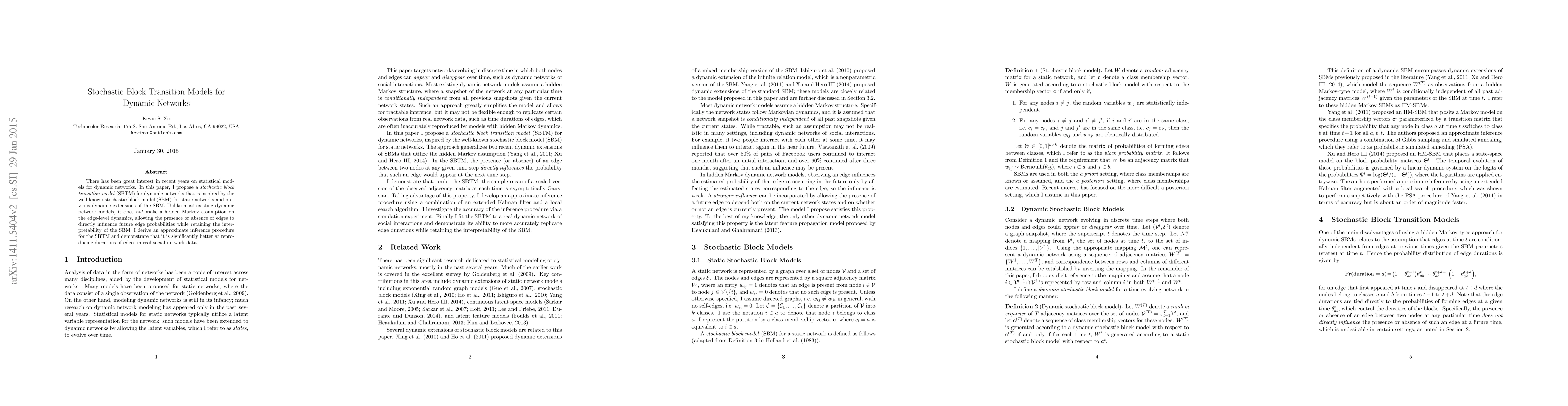 This paper introduces a stochastic block transition model (SBTM) for dynamic networks, diverging from hidden Markov assumptions to allow direct influence of edge presence on future probabilities, while maintaining interpretability. It proposes an approximate inference procedure and shows superior performance in reproducing edge durations in real social network data.