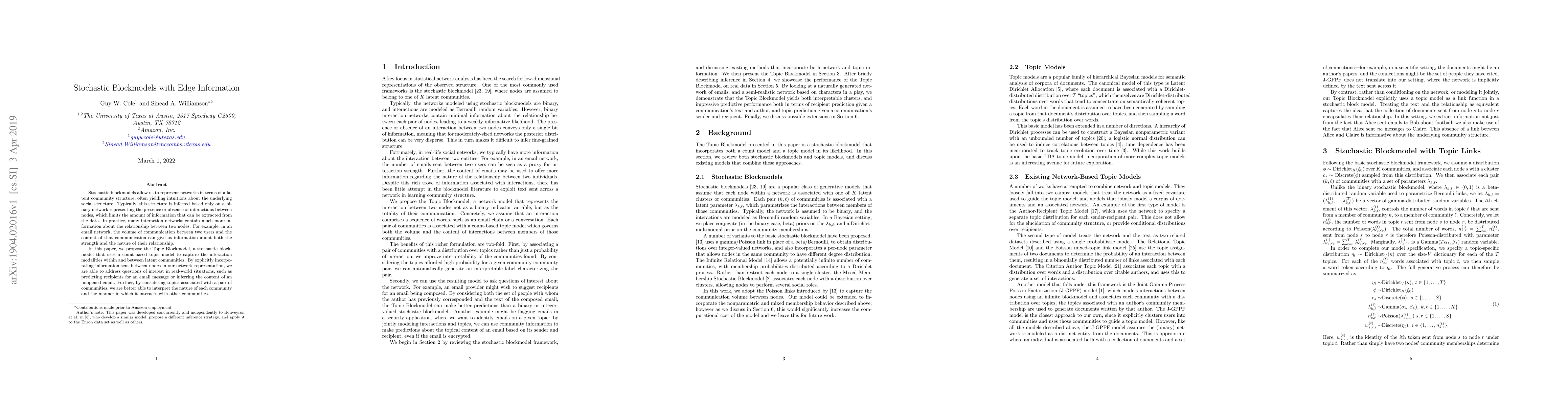 This paper introduces the Topic Blockmodel, a stochastic blockmodel that leverages count-based topic modeling to incorporate interaction modalities, enhancing community structure inference in networks. It aims to predict email recipients and infer unopened email content by considering the nature and strength of relationships.