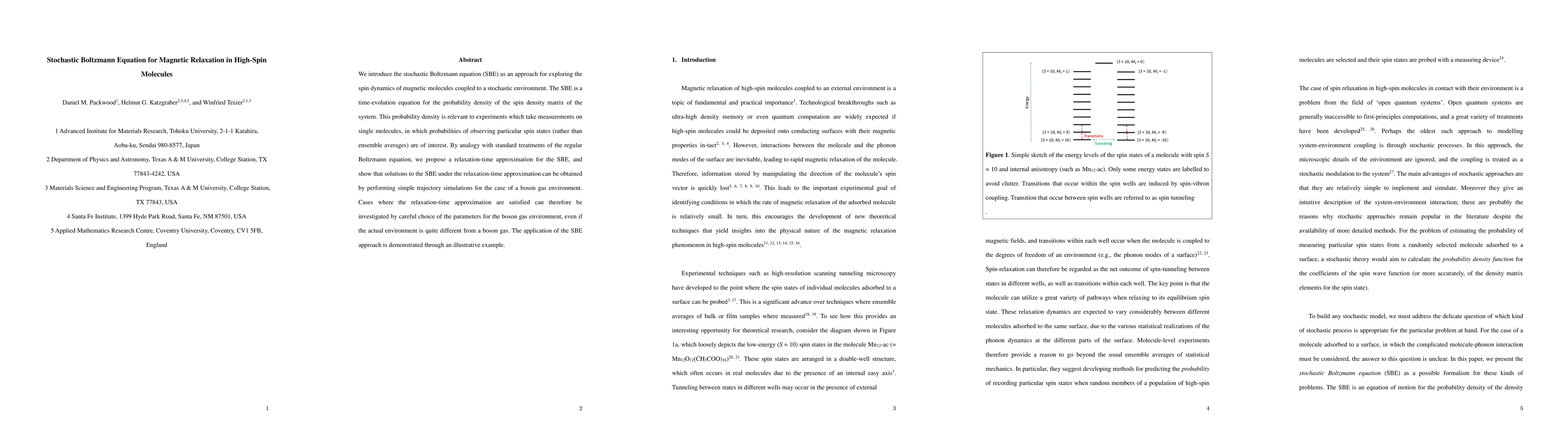 This research introduces the Stochastic Boltzmann Equation (SBE) to study spin dynamics in magnetic molecules interacting with a stochastic environment. It proposes a relaxation-time approximation and demonstrates that trajectory simulations for a boson gas environment can provide solutions, enabling investigation of diverse environments by adjusting boson gas parameters.