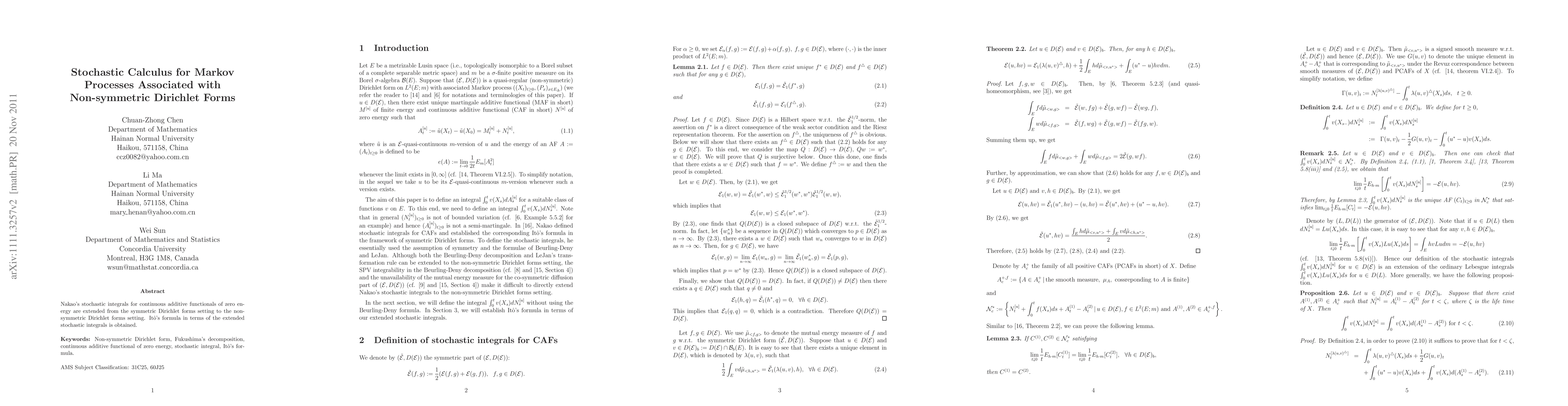 Nakao's stochastic integrals for continuous additive functionals of zero energy are extended from the symmetric Dirichlet forms setting to the non-symmetric Dirichlet forms setting. Ito's formula in terms of the extended stochastic integrals is obtained.