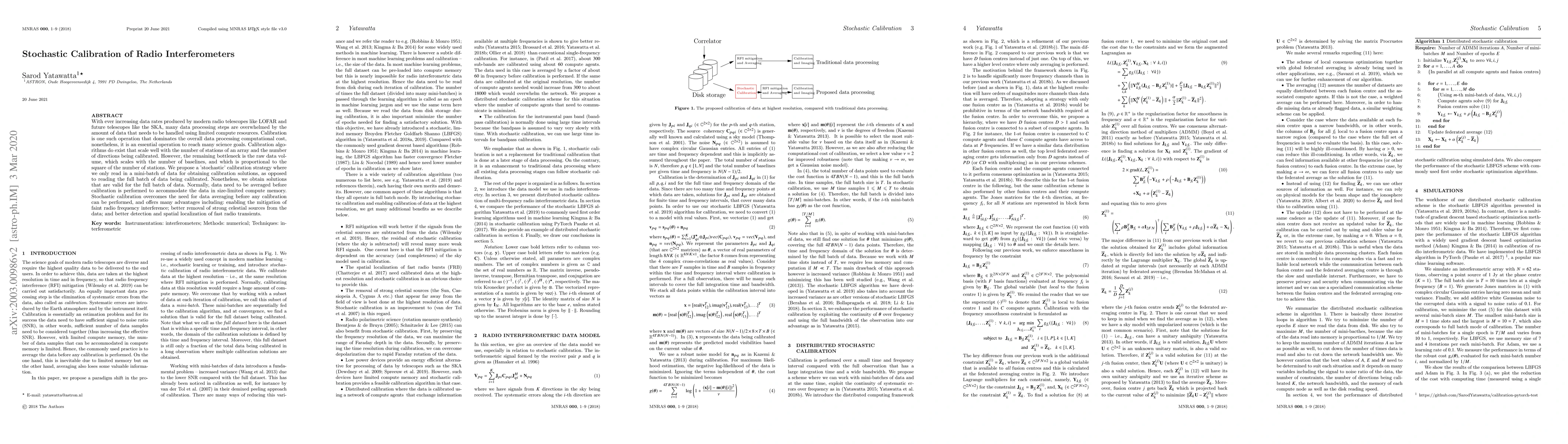 This paper proposes a stochastic calibration strategy for radio interferometers to address the computational bottleneck caused by large data volumes. By using mini-batches of data instead of the full dataset, the method enables calibration without the need for data averaging, thus improving interference mitigation, source removal, and transient detection.