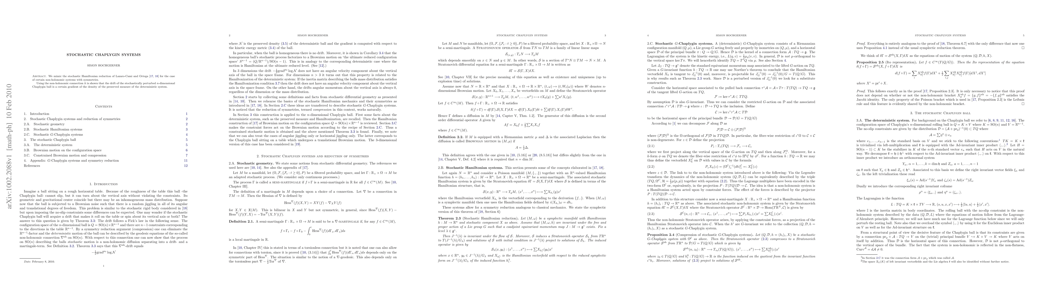 We mimic the stochastic Hamiltonian reduction of Lazaro-Cami and Ortega [17, 18] for the case of certain non-holonomic systems with symmetries. Using the non-holonomic connection it is shown that the drift of the stochastically perturbed $n$-dimensional Chaplygin ball is a certain gradient of the density of the preserved measure of the deterministic system.