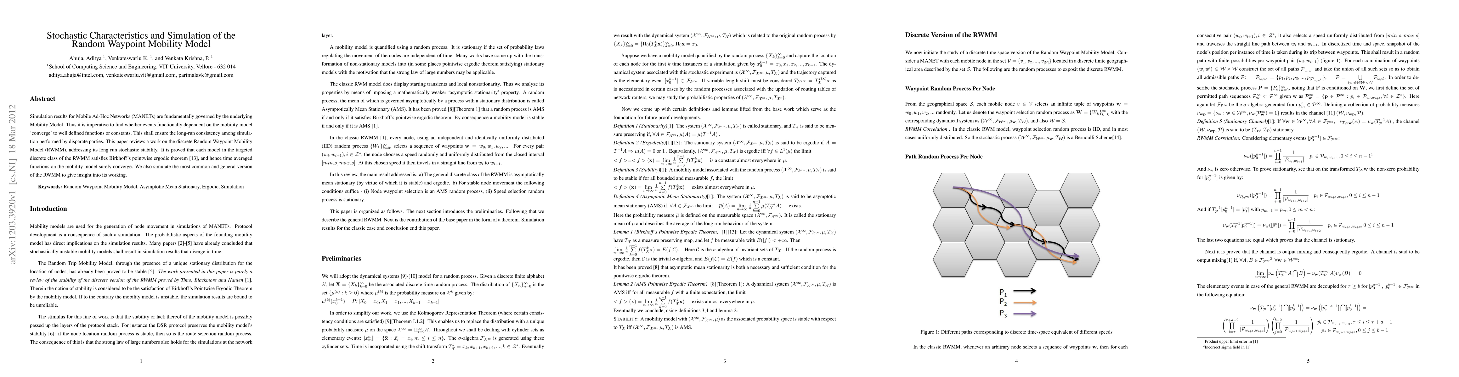 Simulation results for Mobile Ad-Hoc Networks (MANETs) are fundamentally governed by the underlying Mobility Model. Thus it is imperative to find whether events functionally dependent on the mobility model 'converge' to well defined functions or constants. This shall ensure the long-run consistency among simulation performed by disparate parties. This paper reviews a work on the discrete Random Waypoint Mobility Model (RWMM), addressing its long run stochastic stability. It is proved that each model in the targeted discrete class of the RWMM satisfies Birkhoff's pointwise ergodic theorem [13], and hence time averaged functions on the mobility model surely converge. We also simulate the most common and general version of the RWMM to give insight into its working.
