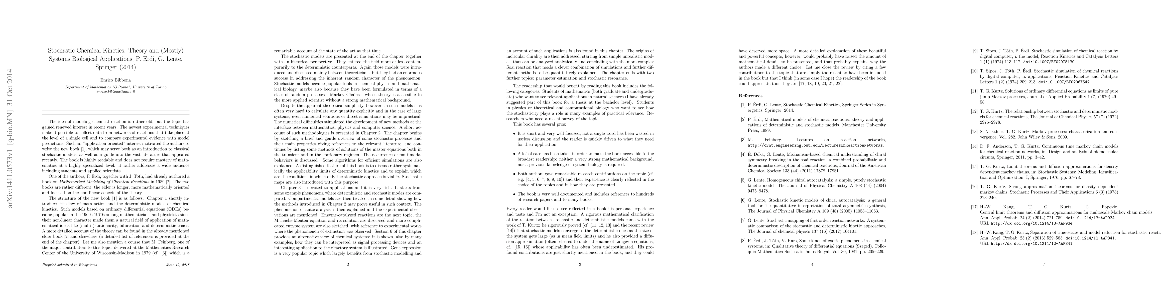Book review of Stochastic Chemical Kinetics. Theory and (Mostly) Systems Biological Applications, P. Erdi, G. Lente. Springer (2014)
