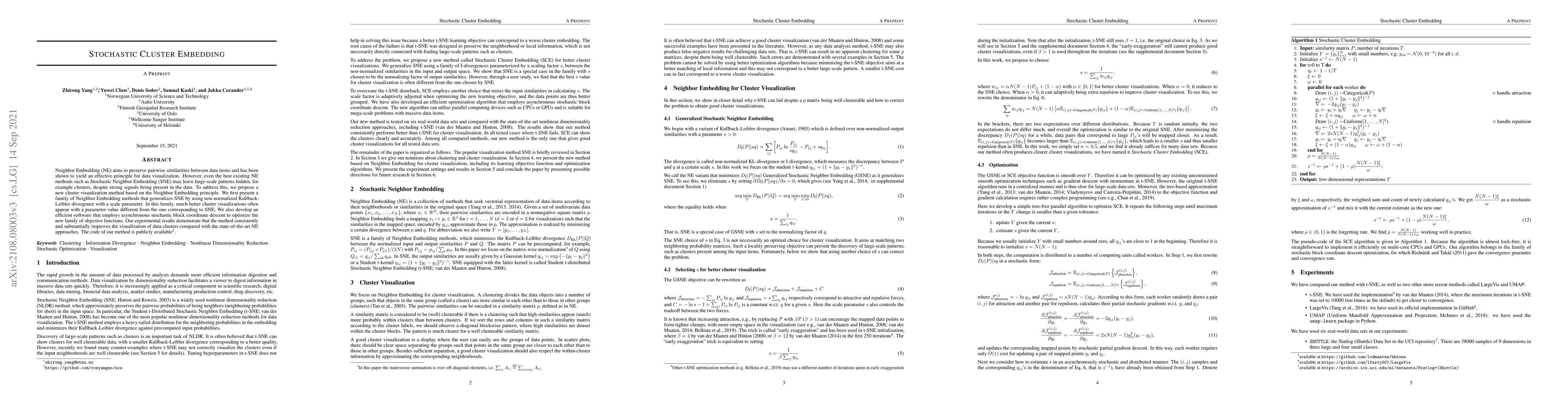 The paper proposes a new cluster visualization method based on generalized Neighbor Embedding using non-normalized Kullback-Leibler divergence, which significantly improves cluster visualization compared to existing Stochastic Neighbor Embedding methods. The new method employs asynchronous stochastic block coordinate descent to optimize the objective function efficiently.