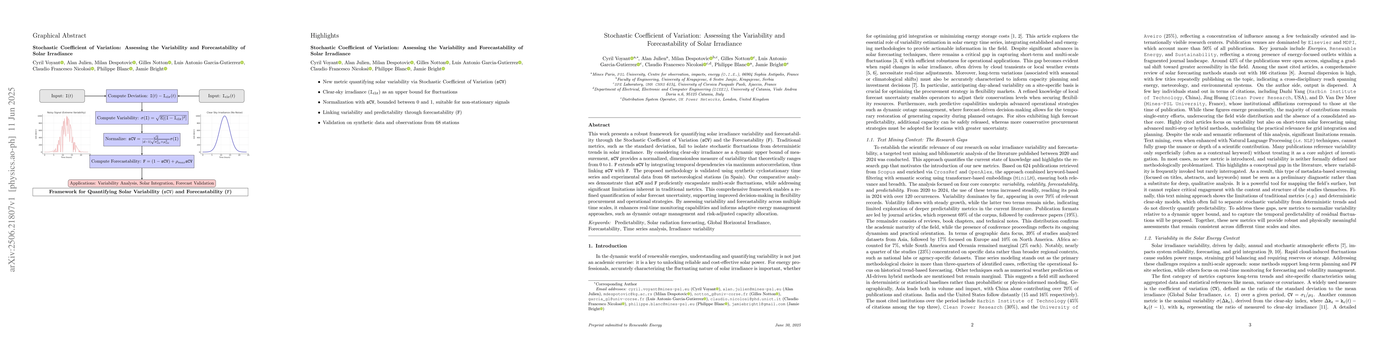 This work presents a robust framework for quantifying solar irradiance variability and forecastability through the Stochastic Coefficient of Variation (sCV) and the Forecastability (F). Traditional metrics, such as the standard deviation, fail to isolate stochastic fluctuations from deterministic trends in solar irradiance. By considering clear-sky irradiance as a dynamic upper bound of measurement, sCV provides a normalized, dimensionless measure of variability that theoretically ranges from 0 to 1. F extends sCV by integrating temporal dependencies via maximum autocorrelation, thus linking sCV with F. The proposed methodology is validated using synthetic cyclostationary time series and experimental data from 68 meteorological stations (in Spain). Our comparative analyses demonstrate that sCV and F proficiently encapsulate multi-scale fluctuations, while addressing significant limitations inherent in traditional metrics. This comprehensive framework enables a refined quantification of solar forecast uncertainty, supporting improved decision-making in flexibility procurement and operational strategies. By assessing variability and forecastability across multiple time scales, it enhances real-time monitoring capabilities and informs adaptive energy management approaches, such as dynamic outage management and risk-adjusted capacity allocation