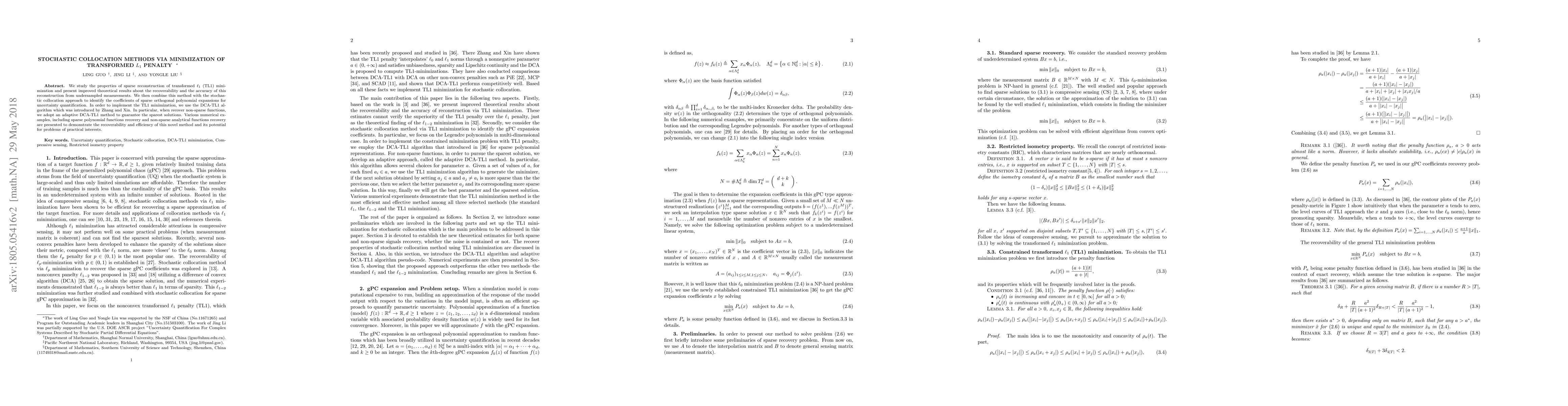 A novel method combining stochastic collocation with transformed $L_1$ minimization improves recoverability and accuracy of sparse reconstruction from undersampled measurements, offering potential for practical applications.