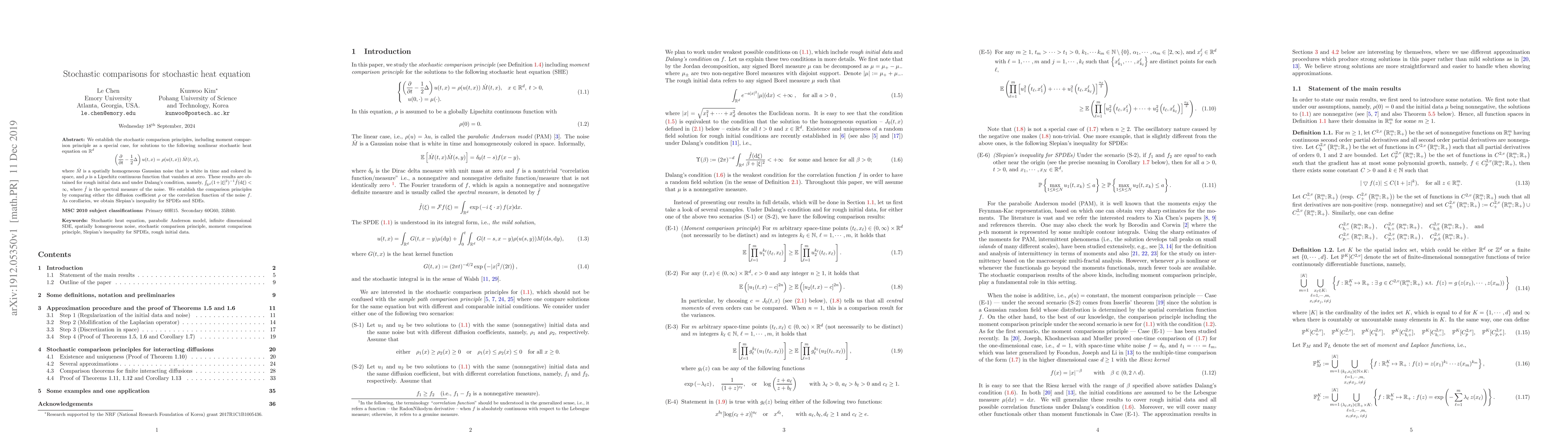 This paper establishes stochastic comparison principles for solutions to a nonlinear stochastic heat equation driven by a spatially homogeneous Gaussian noise. The results include moment comparison principles and are derived under Dalang's condition for rough initial data.