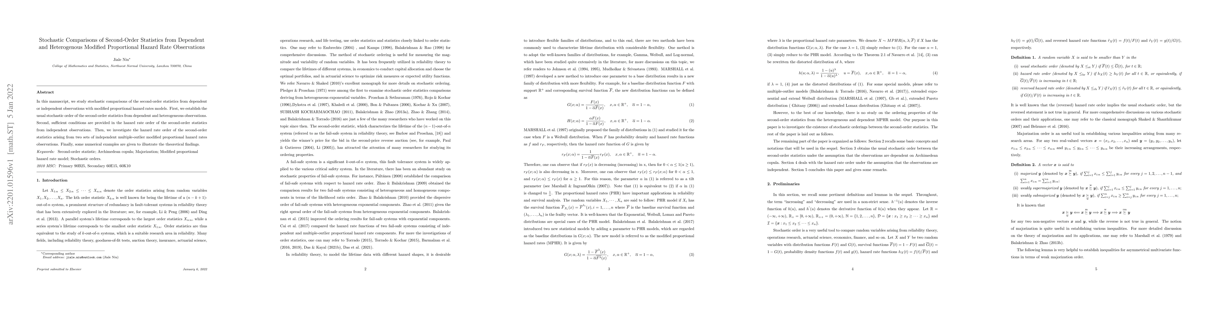 This paper investigates stochastic comparisons of second-order statistics from dependent and heterogeneous observations using modified proportional hazard rates models, establishing stochastic orders and sufficient conditions for hazard rate order, and providing numerical examples to illustrate the findings.