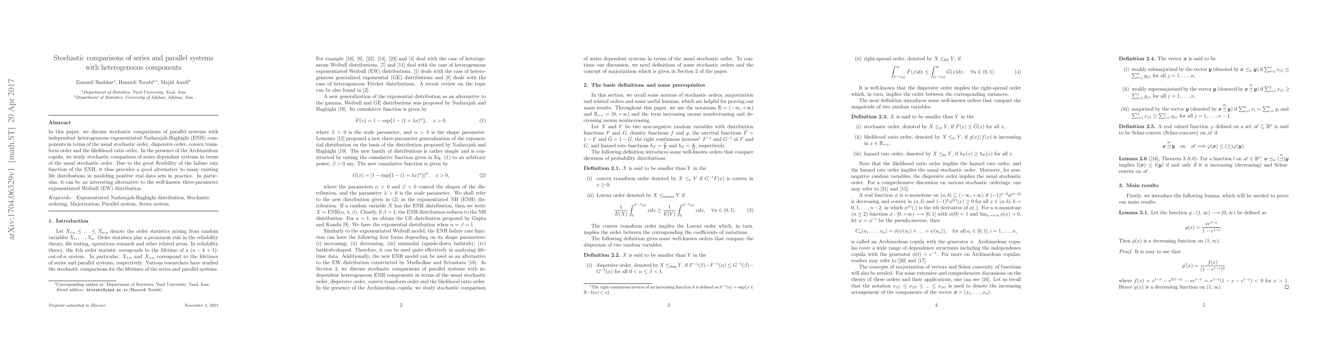This paper examines stochastic comparisons of parallel systems with independent heterogeneous ENH components using various orders, and studies series dependent systems with Archimedean copula under the usual stochastic order.