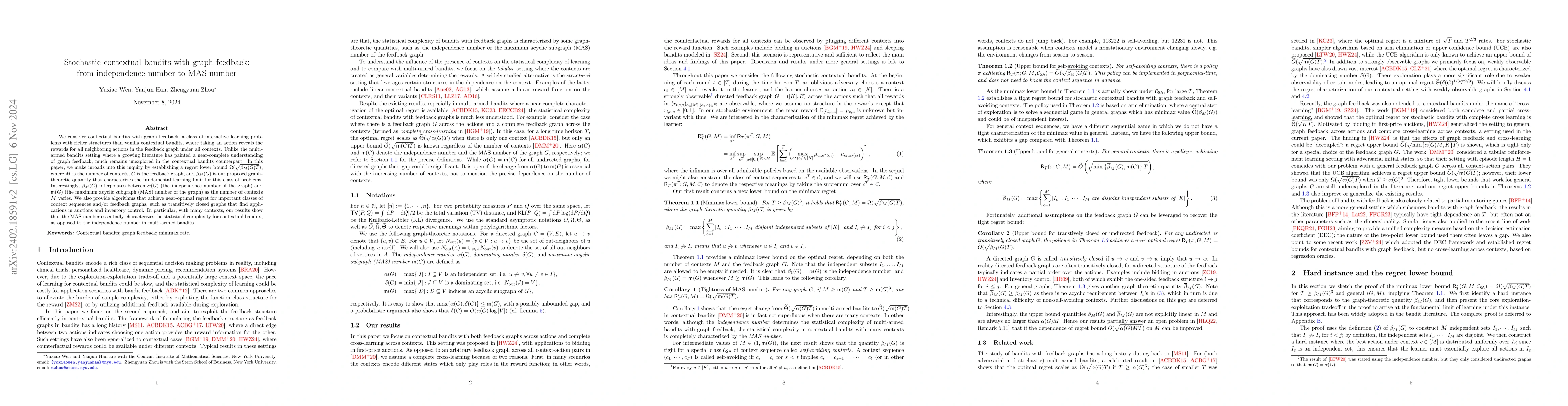 This paper investigates contextual bandits with graph feedback, presenting a new graph-theoretical quantity, $\beta_M(G)$, that bridges the independence number and the maximum acyclic subgraph (MAS) number of a feedback graph. It establishes a regret lower bound and provides algorithms achieving near-optimal performance, highlighting that the MAS number characterizes the complexity for contextual bandits with many contexts.