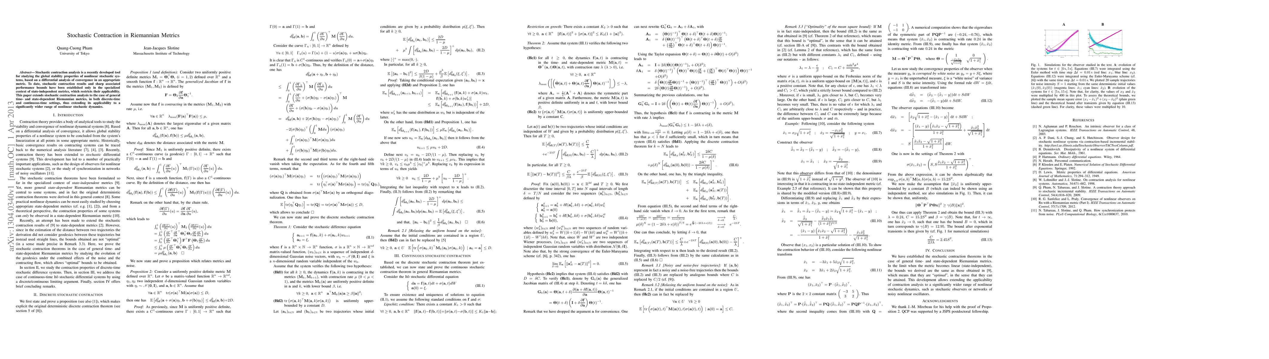 Stochastic contraction analysis is a recently developed tool for studying the global stability properties of nonlinear stochastic systems, based on a differential analysis of convergence in an appropriate metric. To date, stochastic contraction results and sharp associated performance bounds have been established only in the specialized context of state-independent metrics, which restricts their applicability. This paper extends stochastic contraction analysis to the case of general time- and state-dependent Riemannian metrics, in both discrete-time and continuous-time settings, thus extending its applicability to a significantly wider range of nonlinear stochastic dynamics.