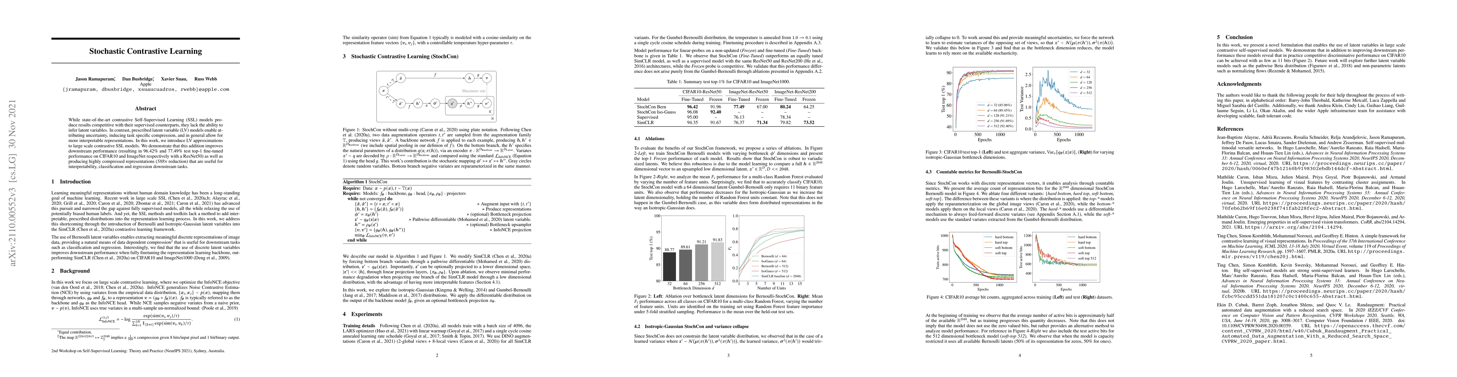This paper introduces Latent Variable approximations to contrastive Self-Supervised Learning models, improving downstream performance and producing compressed representations for better interpretability.