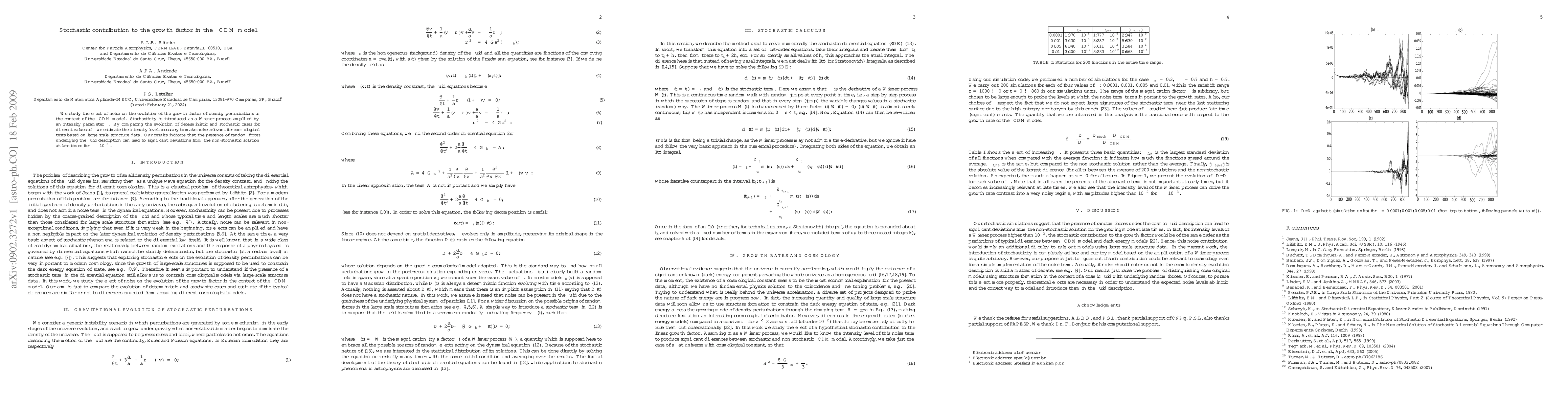 We study the effect of noise on the evolution of the growth factor of density perturbations in the context of the LCDM model. Stochasticity is introduced as a Wiener process amplified by an intensity parameter alpha. By comparing the evolution of deterministic and stochastic cases for different values of alpha we estimate the intensity level necessary to make noise relevant for cosmological tests based on large-scale structure data. Our results indicate that the presence of random forces underlying the fluid description can lead to significant deviations from the nonstochastic solution at late times for alpha>0.001.