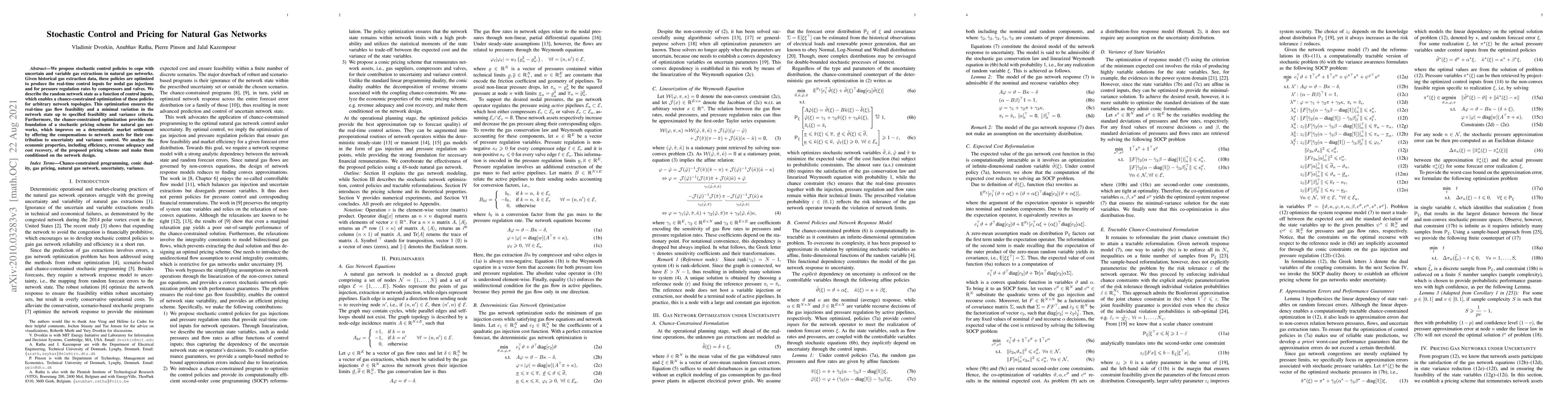 This paper proposes stochastic control policies to optimize gas extraction in natural gas networks under uncertainty, optimizing real-time gas injections and pressure regulation. It introduces a chance-constrained optimization framework that ensures feasible gas flow and minimal network state variation, underpinning a stochastic pricing scheme that compensates network assets for managing uncertainty and variance.