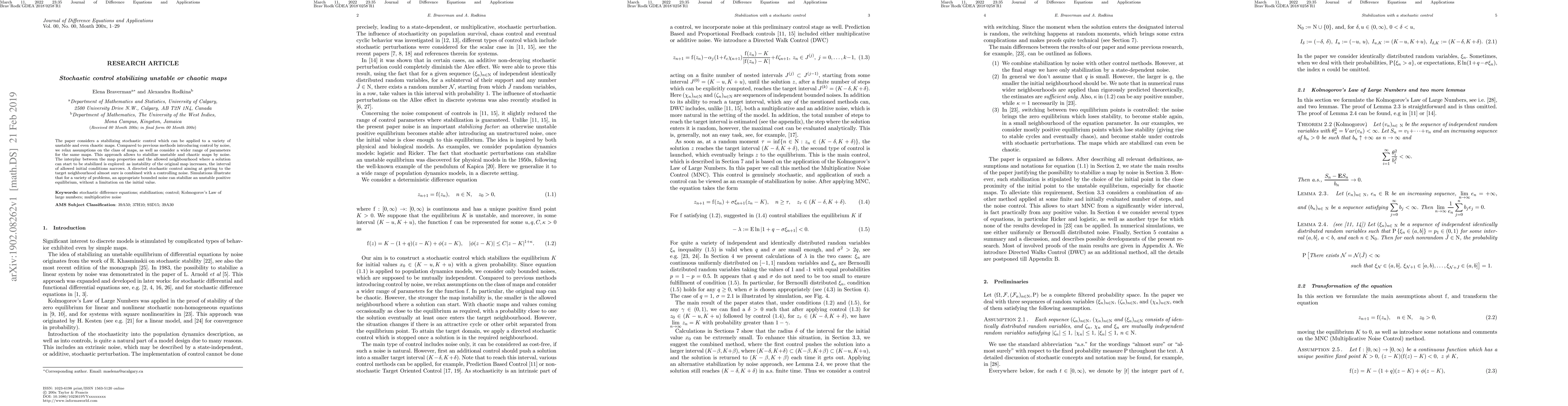 Researchers developed a new method to stabilize unstable and chaotic maps using stochastic control and noise, allowing for wider range of parameters and initial conditions compared to previous methods.