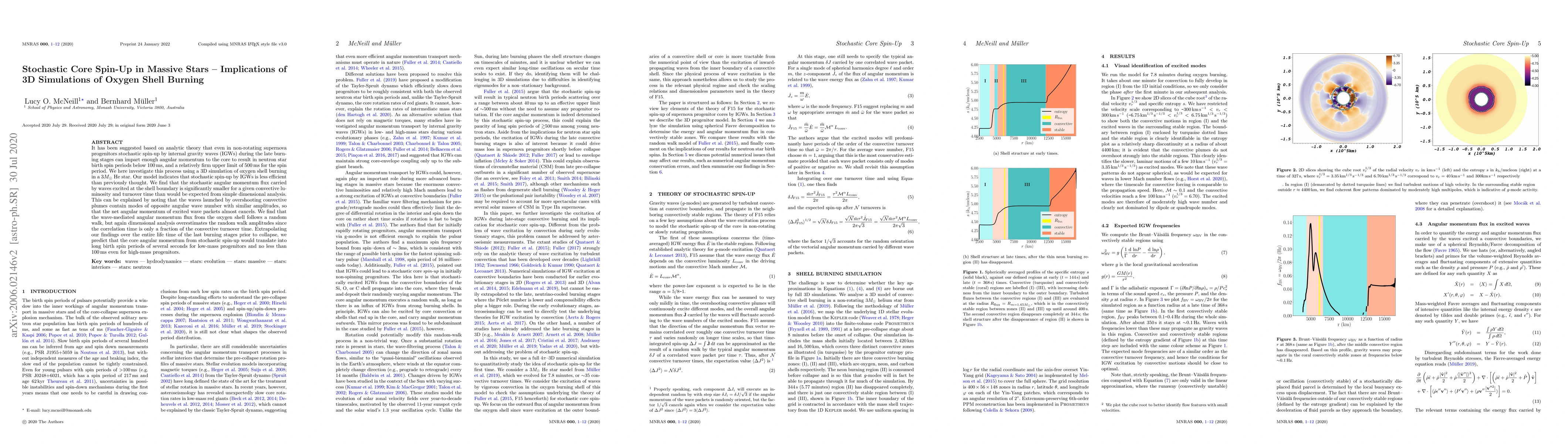 This paper investigates the stochastic spin-up of massive star cores via internal gravity waves during oxygen shell burning, finding that this process is less efficient than previously thought. The study concludes that the angular momentum flux from these waves results in longer core spin periods, predicting several seconds for low-mass progenitors and at least 100ms for high-mass progenitors.