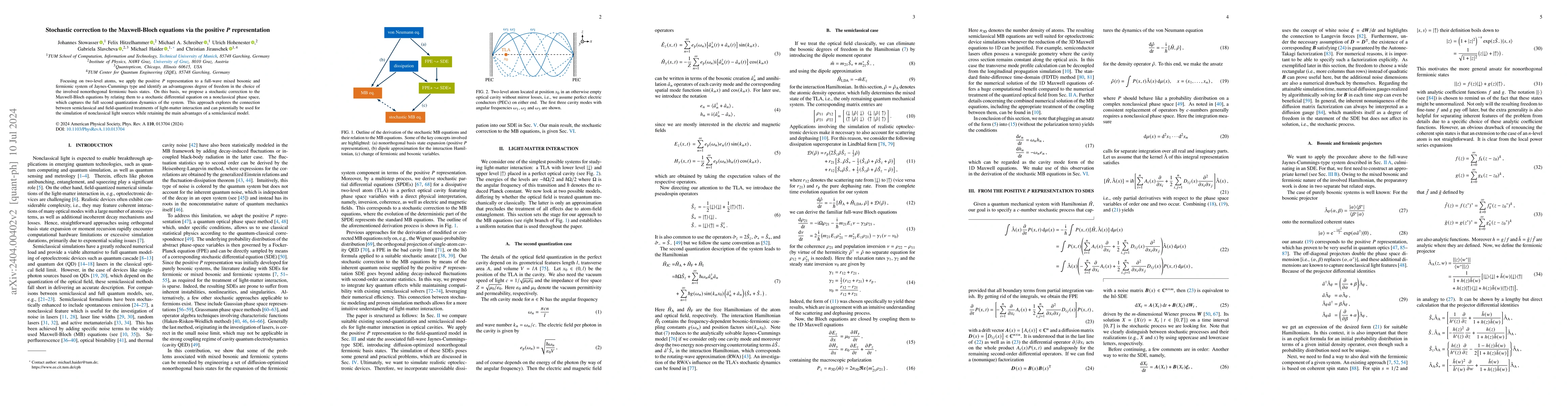 This paper proposes a stochastic correction to the Maxwell-Bloch equations using the positive P-representation for a mixed bosonic and fermionic system of Jaynes-Cummings type. It identifies an advantageous degree of freedom in the choice of nonorthogonal fermionic basis states and links the correction to a stochastic differential equation, bridging semiclassical and quantized light-matter interaction models.