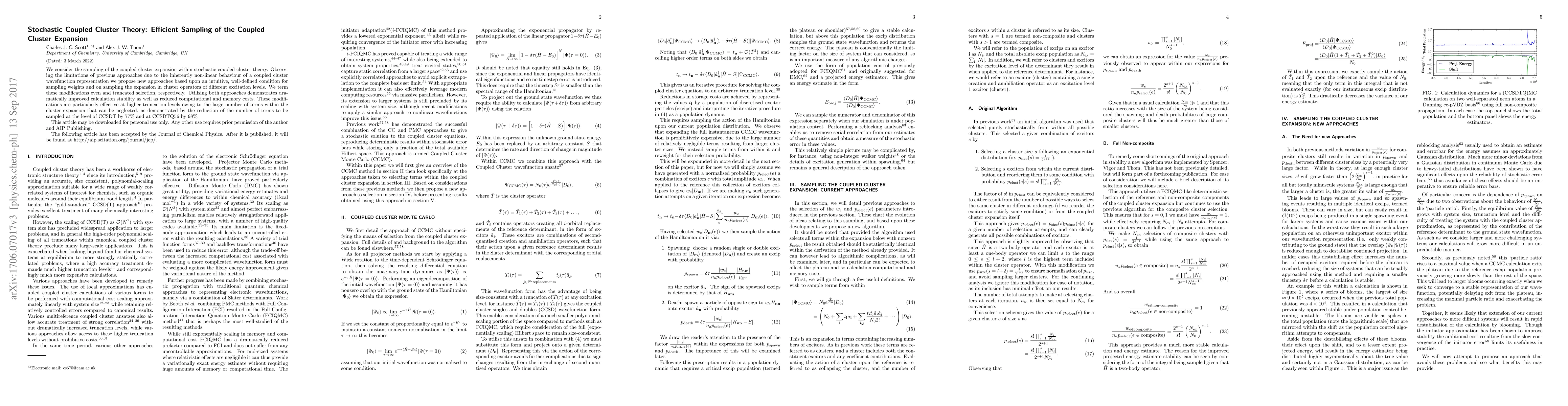 This paper proposes new sampling techniques for stochastic coupled cluster theory to improve stability and reduce computational costs. The methods, termed even and truncated selection, significantly decrease the number of terms sampled, achieving a 77% reduction at CCSDT and a 98% reduction at CCSDTQ56 levels.