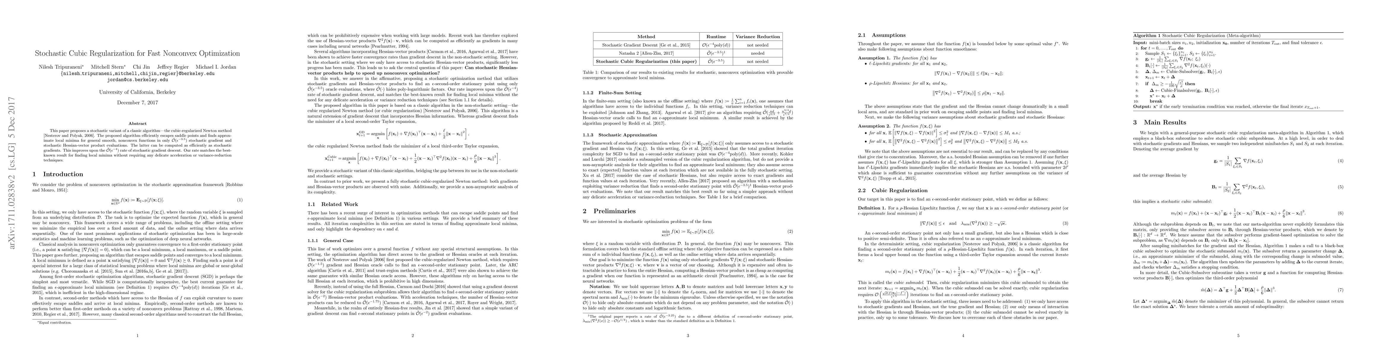 This paper proposes a stochastic variant of a classic algorithm---the cubic-regularized Newton method [Nesterov and Polyak 2006]. The proposed algorithm efficiently escapes saddle points and finds approximate local minima for general smooth, nonconvex functions in only $\mathcal{\tilde{O}}(\epsilon^{-3.5})$ stochastic gradient and stochastic Hessian-vector product evaluations. The latter can be computed as efficiently as stochastic gradients. This improves upon the $\mathcal{\tilde{O}}(\epsilon^{-4})$ rate of stochastic gradient descent. Our rate matches the best-known result for finding local minima without requiring any delicate acceleration or variance-reduction techniques.