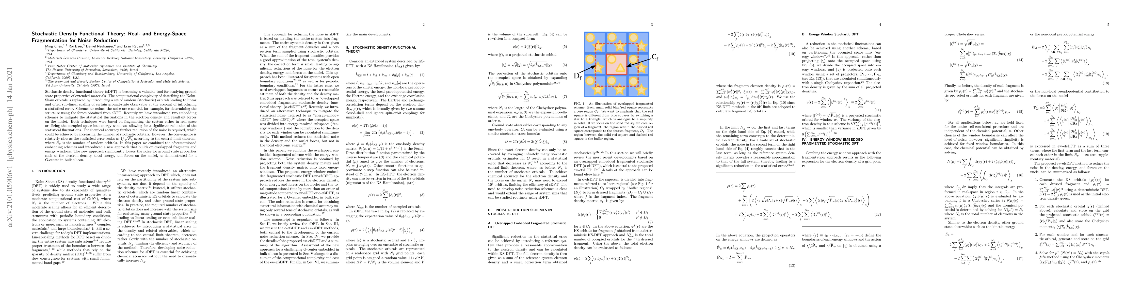 The research combines overlapping embedded fragmented stochastic DFT (o-efsDFT) with energy window stochastic DFT to reduce noise in ground-state properties without increasing the number of stochastic orbitals.