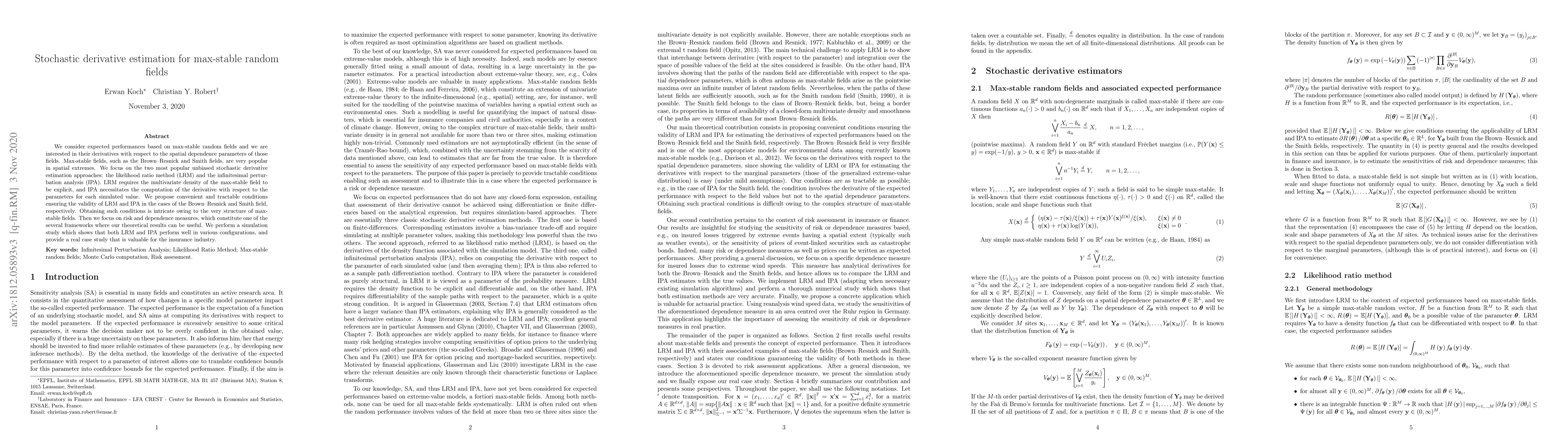 This paper investigates the estimation of derivatives for max-stable random fields, focusing on the likelihood ratio method and infinitesimal perturbation analysis. It establishes conditions for their validity and demonstrates their effectiveness through simulations and a real-world insurance application.