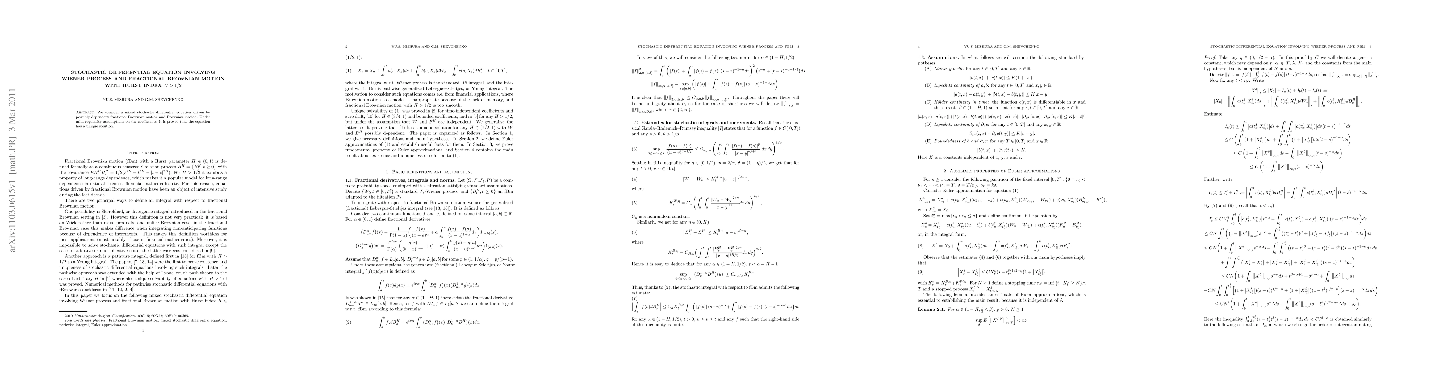 Summary: This paper investigates a stochastic differential equation driven by fractional Brownian motion and Brownian motion, proving the existence and uniqueness of a solution under mild regularity conditions. The study focuses on scenarios where the fractional Brownian motion's Hurst index exceeds 1/2.