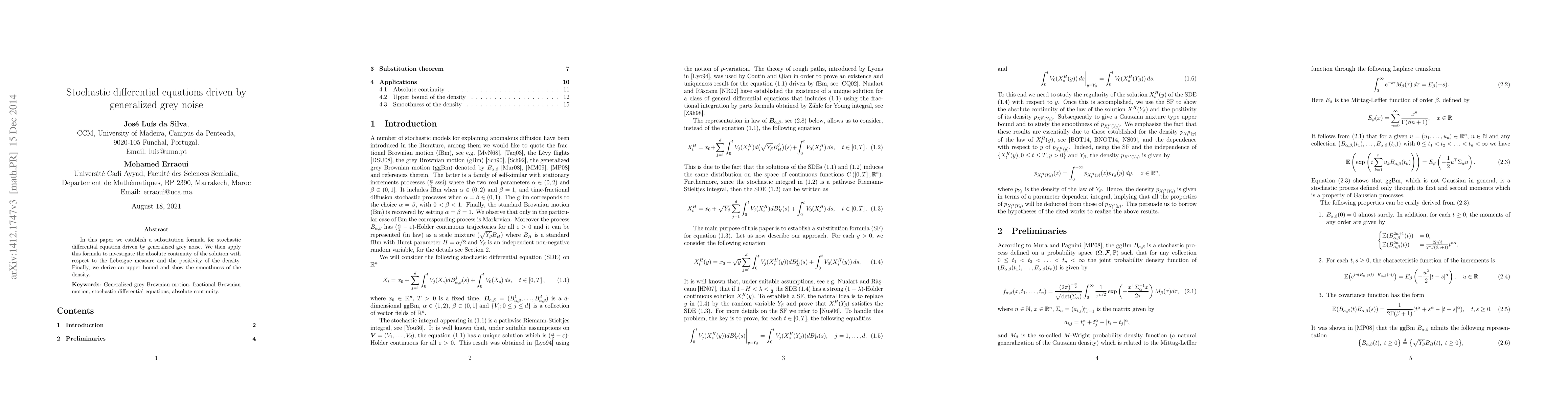 This paper develops a substitution formula for stochastic differential equations driven by generalized grey noise, and uses it to explore the absolute continuity and positivity of the solution's density, ultimately deriving an upper bound and demonstrating the density's smoothness.