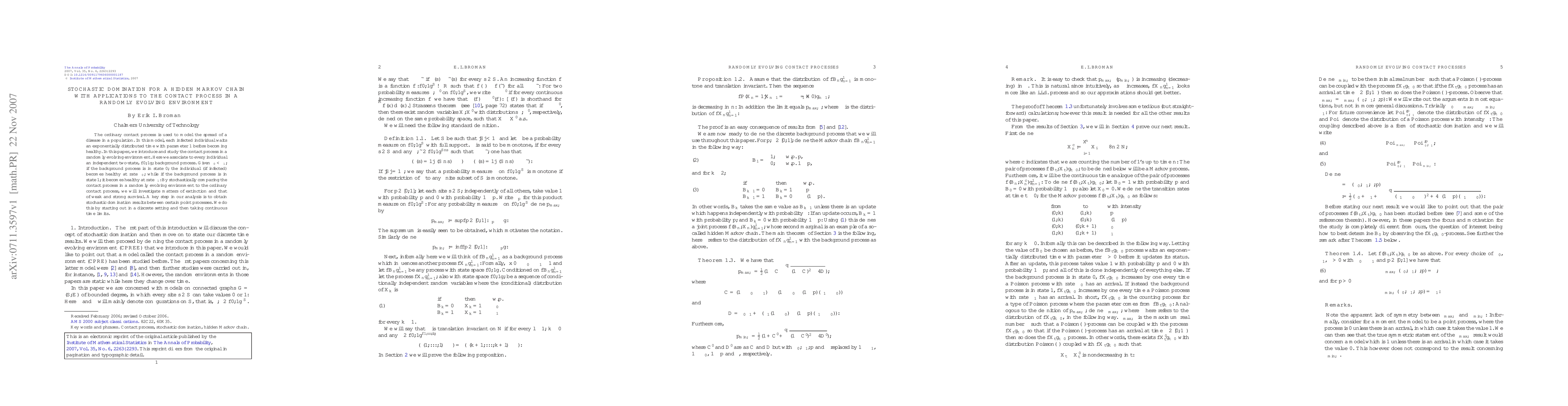 This paper studies the contact process in a randomly evolving environment where individuals' recovery rates depend on an independent background process. The authors investigate extinction and survival through stochastic domination, comparing it to the ordinary contact process and deriving results by transitioning from discrete to continuous time.