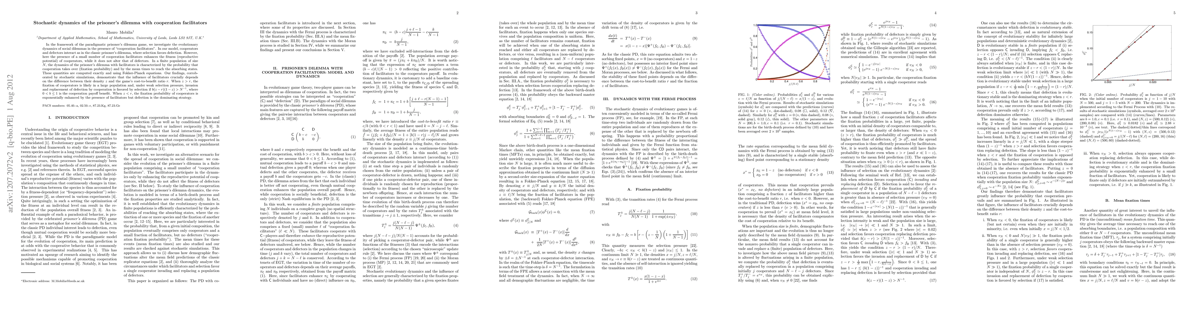 This paper explores the evolutionary dynamics of the prisoner's dilemma in the presence of cooperation facilitators, showing that their density relative to the game's cost-to-benefit ratio determines whether cooperation or defection prevails. Facilitators enhance cooperators' fitness, promoting cooperation when their density exceeds the cost-to-benefit ratio.
