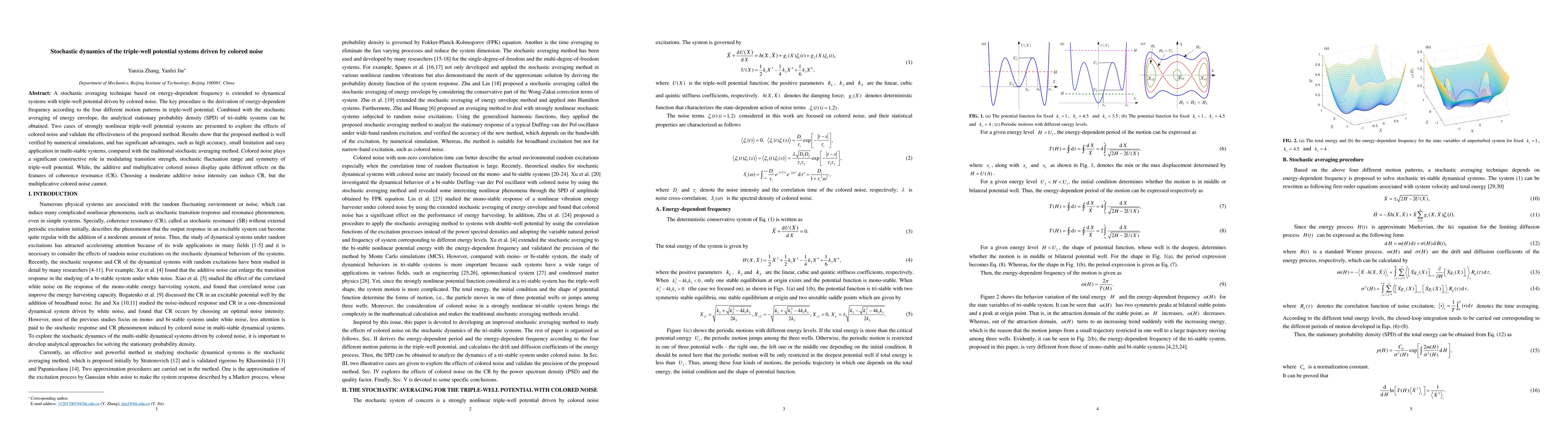 This paper extends a stochastic averaging technique to triple-well potential systems driven by colored noise, deriving energy-dependent frequency for different motion patterns. The method yields accurate analytical stationary probability density for tri-stable systems, demonstrating advantages over traditional methods.