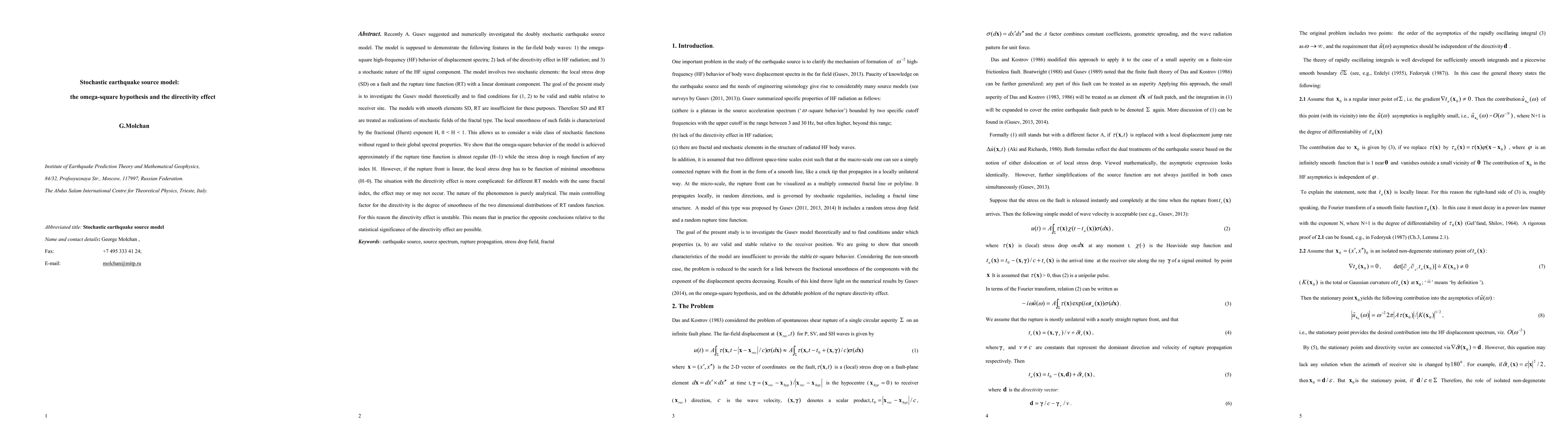 Recently A. Gusev suggested and numerically investigated the doubly stochastic earthquake source model. The model is supposed to demonstrate the following features in the far-field body waves: 1) the omega-square high-frequency (HF) behavior of displacement spectra; 2) lack of the directivity effect in HF radiation; and 3) a stochastic nature of the HF signal component. The model involves two stochastic elements: the local stress drop (SD) on a fault and the rupture time function (RT) with a linear dominant component. The goal of the present study is to investigate the Gusev model theoretically and to find conditions for (1, 2) to be valid and stable relative to receiver site. The models with smooth elements SD, RT are insufficient for these purposes. Therefore SD and RT are treated as realizations of stochastic fields of the fractal type. The local smoothness of such fields is characterized by the fractional (Hurst) exponent H, 0 < H < 1. This allows us to consider a wide class of stochastic functions without regard to their global spectral properties. We show that the omega-square behavior of the model is achieved approximately if the rupture time function is almost regular (H~1) while the stress drop is rough function of any index H. However, if the rupture front is linear, the local stress drop has to be function of minimal smoothness (H~0). The situation with the directivity effect is more complicated: for different RT models with the same fractal index, the effect may or may not occur. The nature of the phenomenon is purely analytical. The main controlling factor for the directivity is the degree of smoothness of the two dimensional distributions of RT random function. For this reason the directivity effect is unstable. This means that in practice the opposite conclusions relative to the statistical significance of the directivity effect are possible