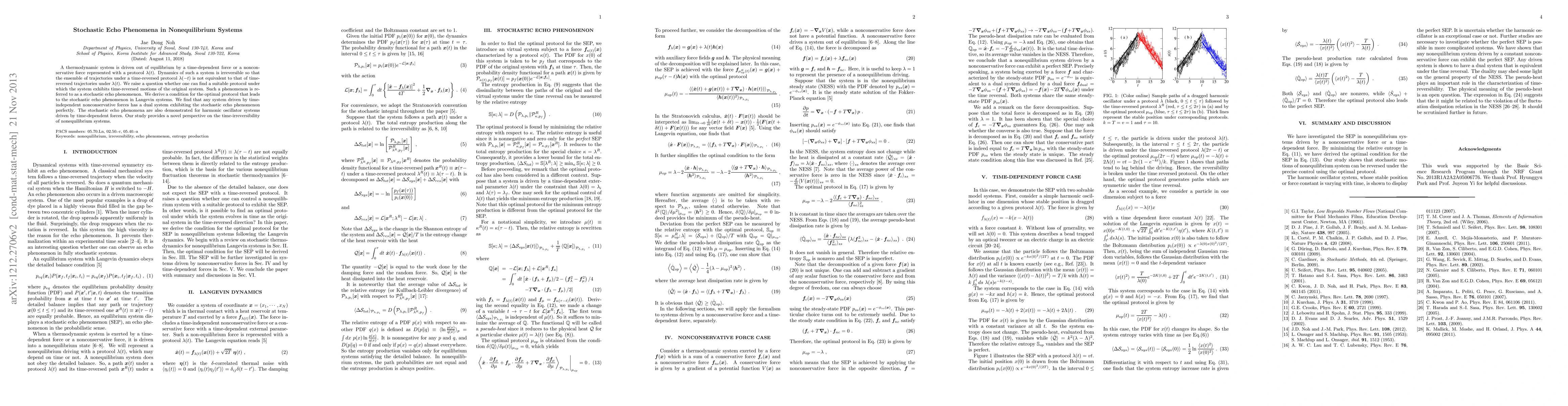 This paper explores stochastic echo phenomena in nonequilibrium thermodynamic systems driven by time-dependent forces, revealing that optimal protocols can induce time-reversed motion. Simple harmonic oscillators and dual systems driven by time-independent forces exhibit perfect stochastic echo, offering new insights into time-irreversibility.
