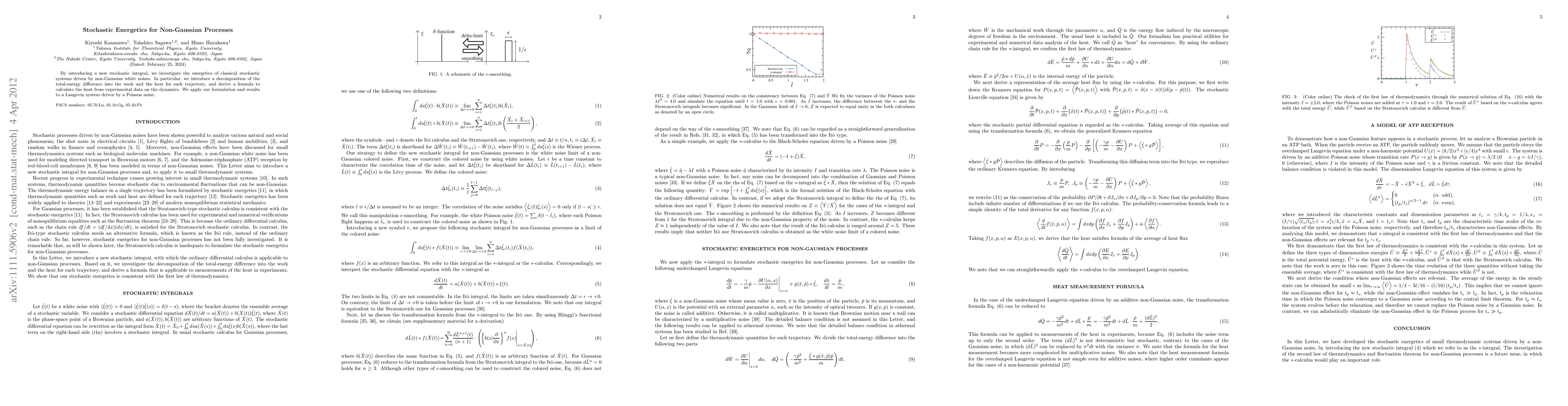 This research introduces a new stochastic integral (∗-integral) specifically designed for non-Gaussian processes, distinguishing it from previous work focused on Gaussian processes. The ∗-integral's ability to accurately calculate heat from experimental data and its consistency with the first law of thermodynamics for non-Gaussian noises sets it apart from existing methods.