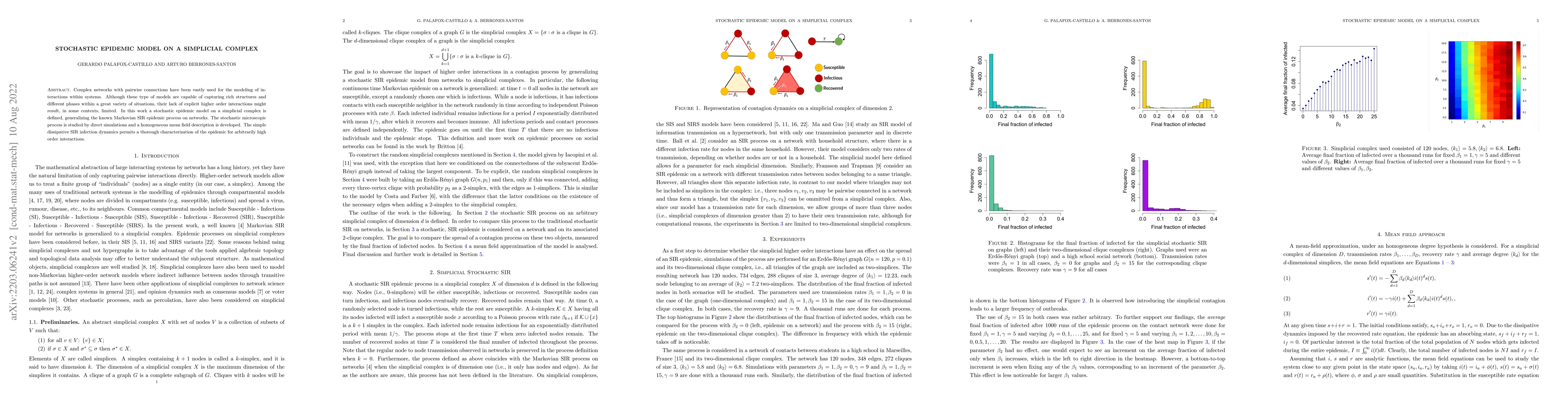 This paper introduces a stochastic epidemic model on a simplicial complex to capture higher-order interactions beyond pairwise connections, showing that third-order interactions significantly alter the dynamics and stationary states compared to traditional pairwise network models.