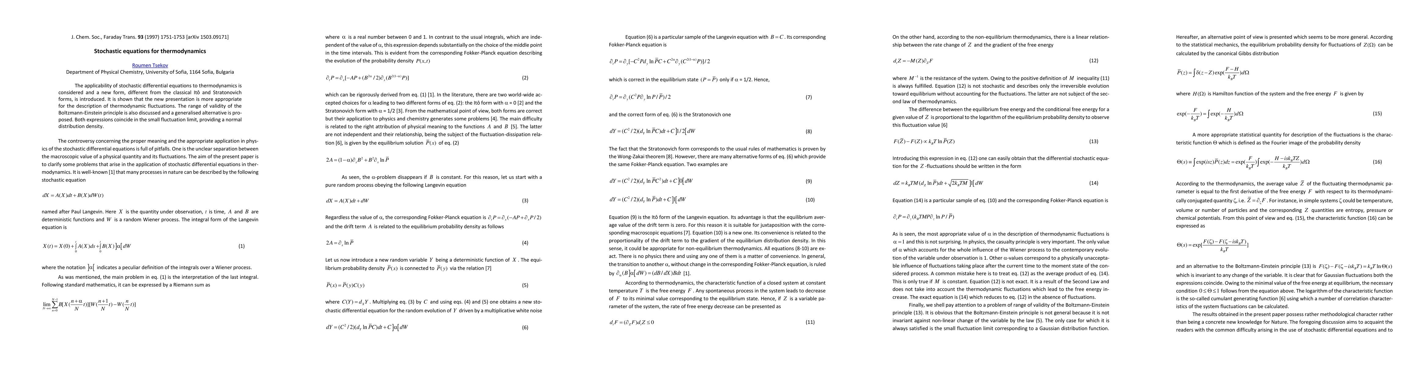 This paper introduces a novel form of stochastic differential equations distinct from Ito and Stratonovich forms, demonstrating its superior applicability to thermodynamic fluctuation descriptions. It also proposes a generalized alternative to the Boltzmann-Einstein principle, which aligns with the original in the small fluctuation limit.