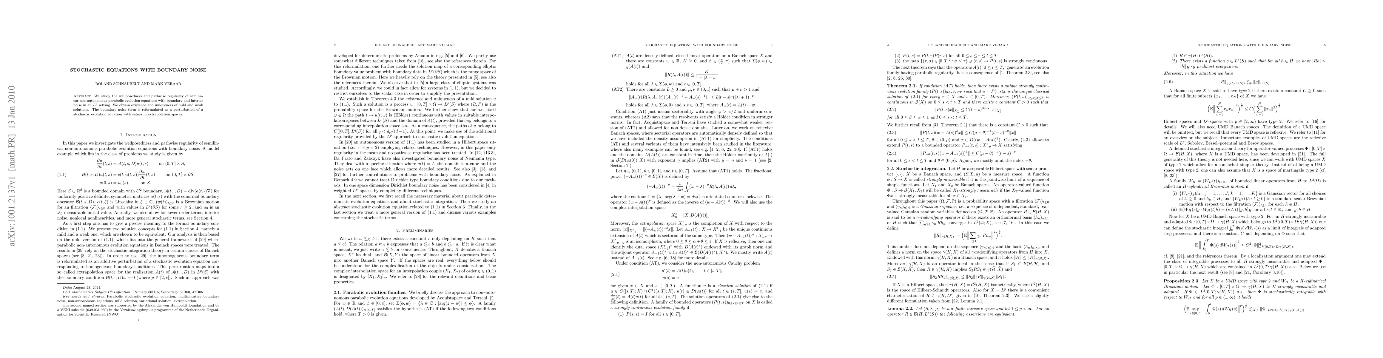 This paper investigates the wellposedness and regularity of semilinear non-autonomous parabolic evolution equations under boundary and interior noise, proving existence and uniqueness of both mild and weak solutions. The boundary noise is reinterpreted as a perturbation in extrapolation spaces.